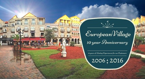 The European Village celebrated its 10-year anniversary on Sunday, February 21st, 2016 starting with a fantastic gourmet Farmers Market, and a family-zone with bounce houses, face painting, balloons, and a family friendly DJ; and ending with Live Music and a display of fireworks at night.